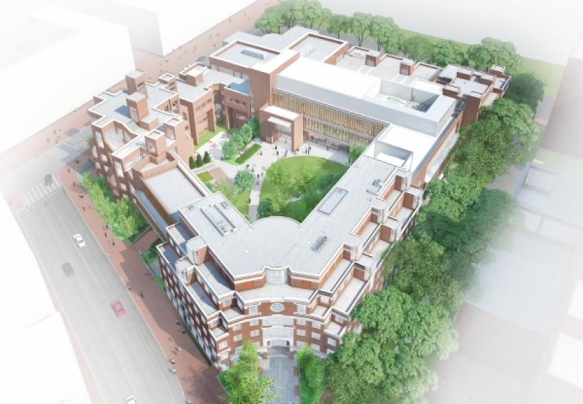 - Includes infill construction at the perimeter of the campus, maintaining the open landscaped courtyard at its center